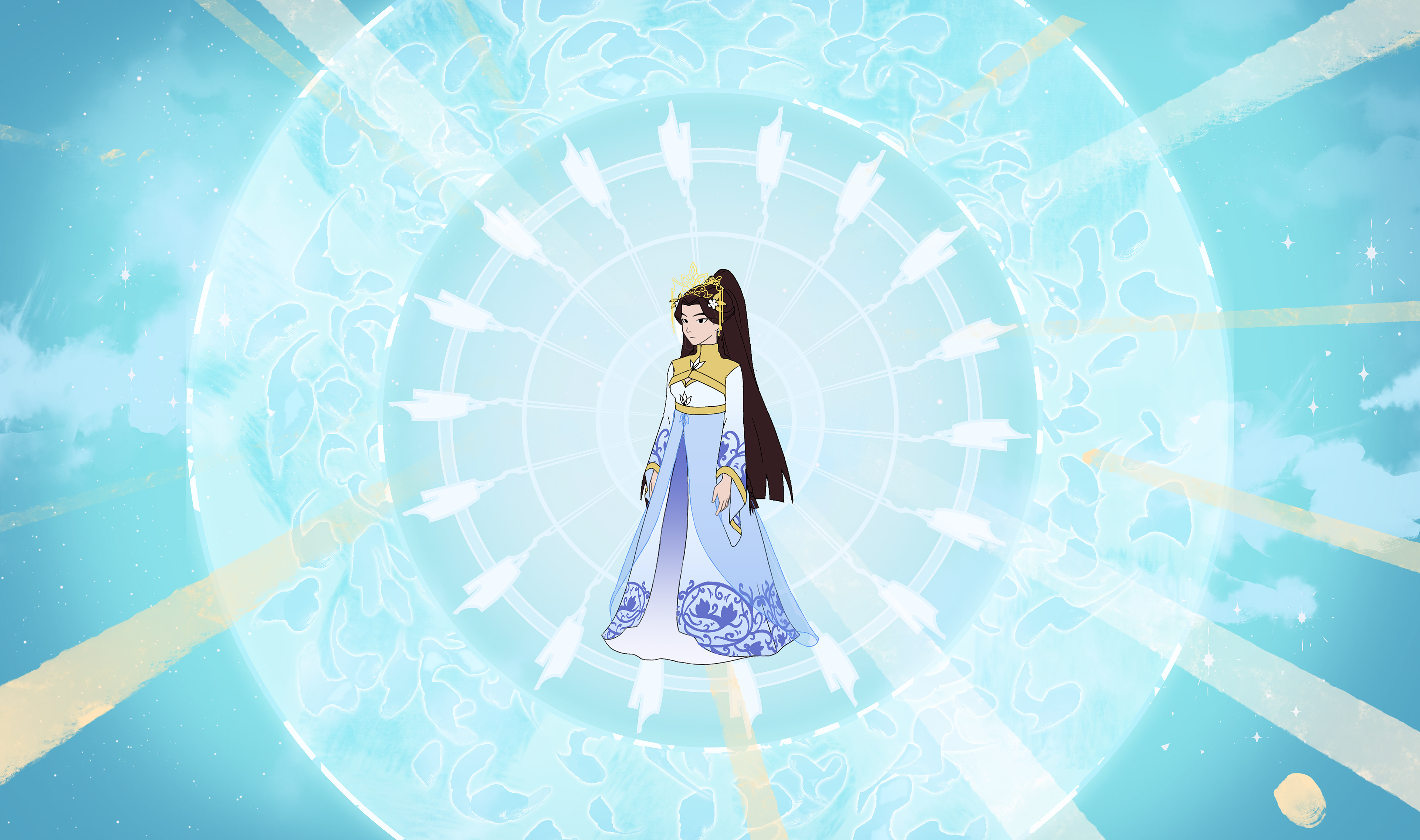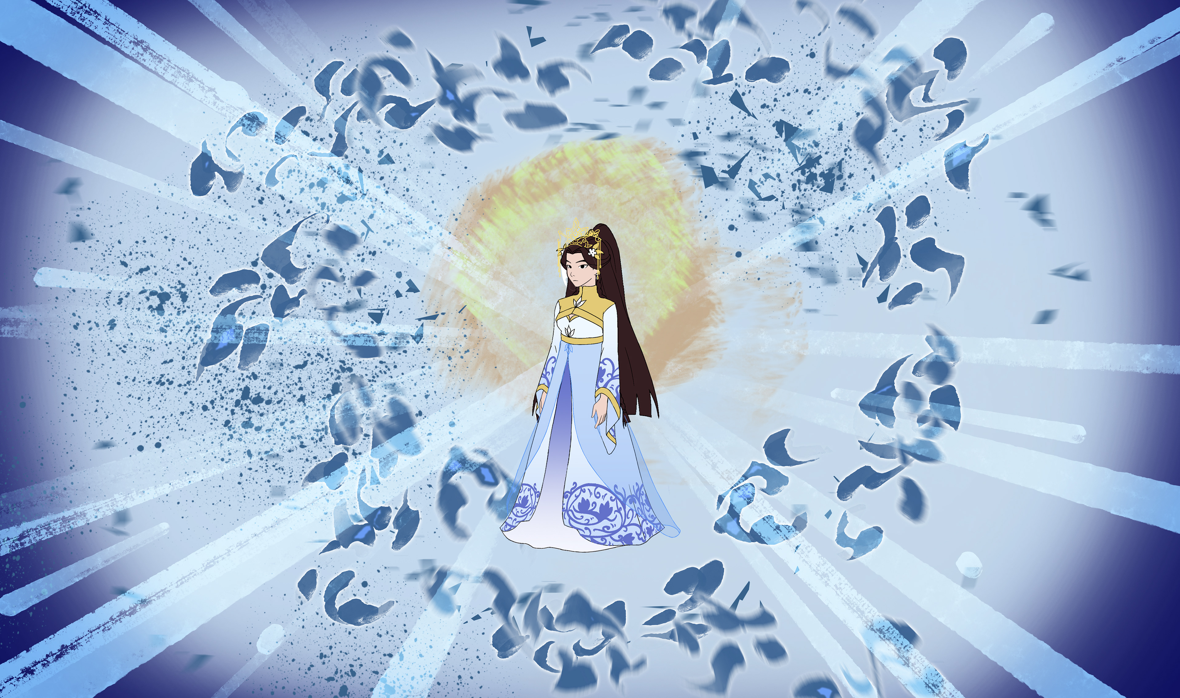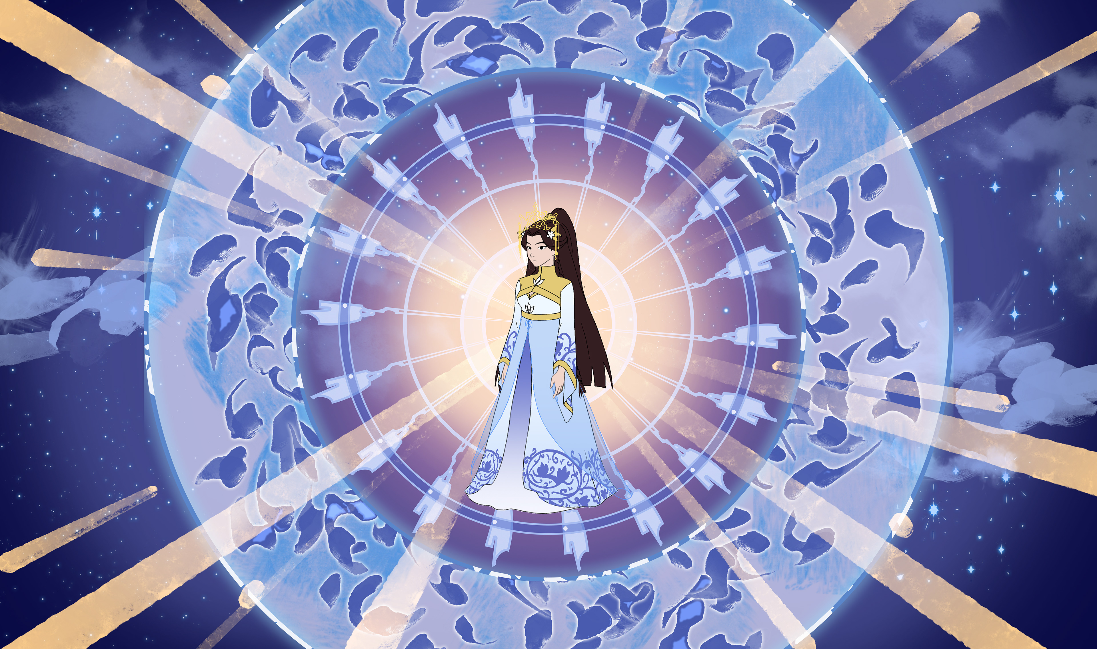 Graphics for Wen Yi's room. Wen Yi has an interest in history, so I thought she might collect illustrated panels depicting tea production, tea magic, and tea exports (to Soland in the west). Because Ci has been colonized for a while, I referenced Chinese illustrations created for western audiences. Other graphics reference her journey (death/rebirth) and powers of prophecy—these are more rooted in Chinese culture.