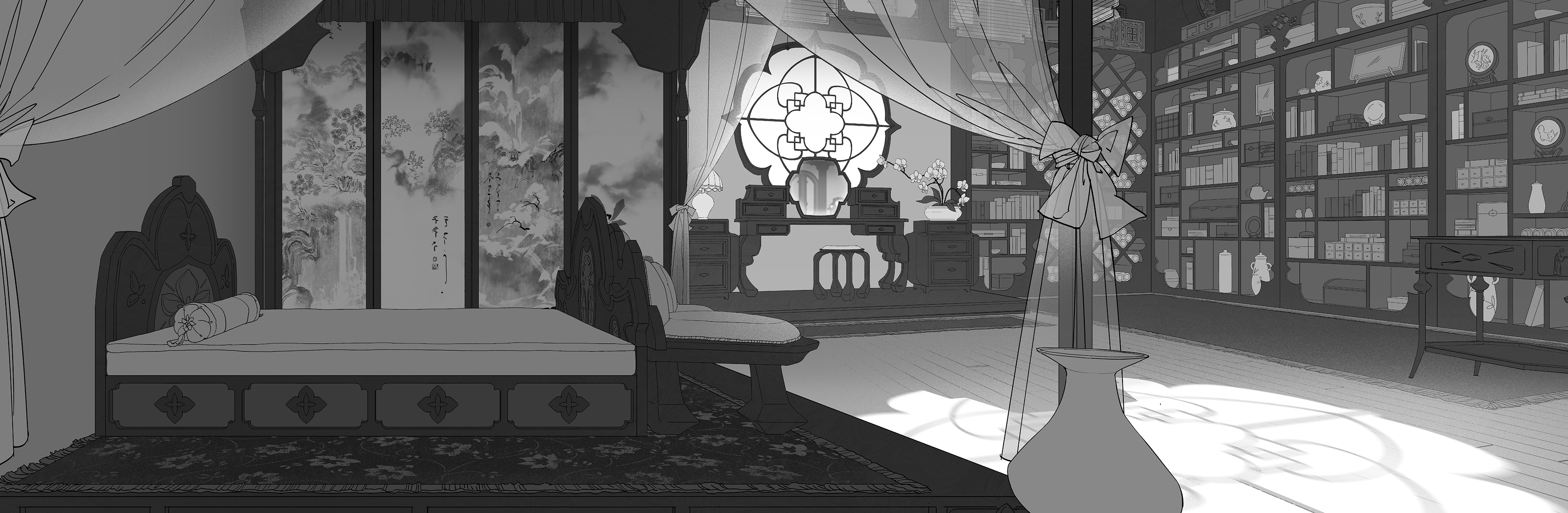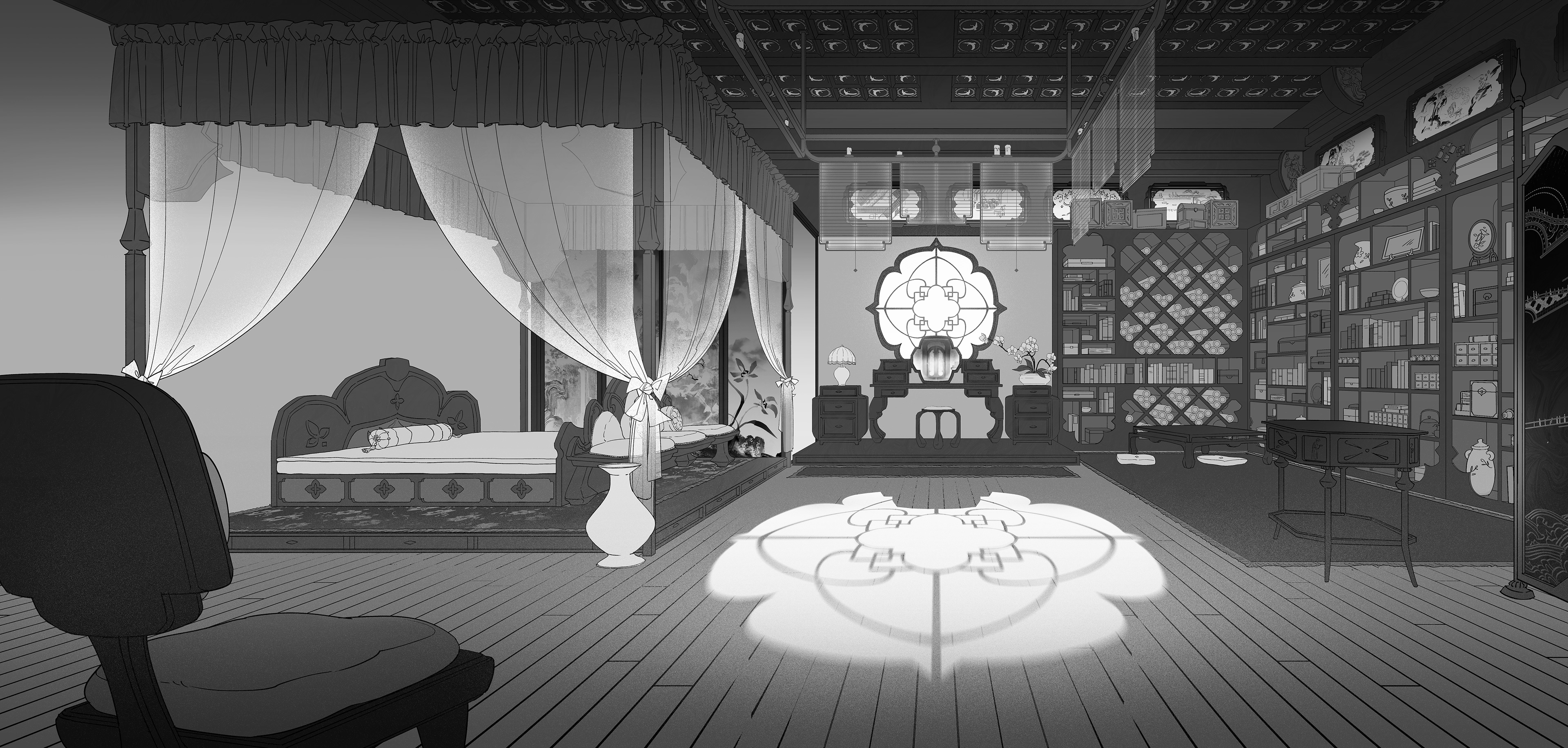 Some of the panels along Wen Yi's room are called WIP but were enough for the final BG designs.
